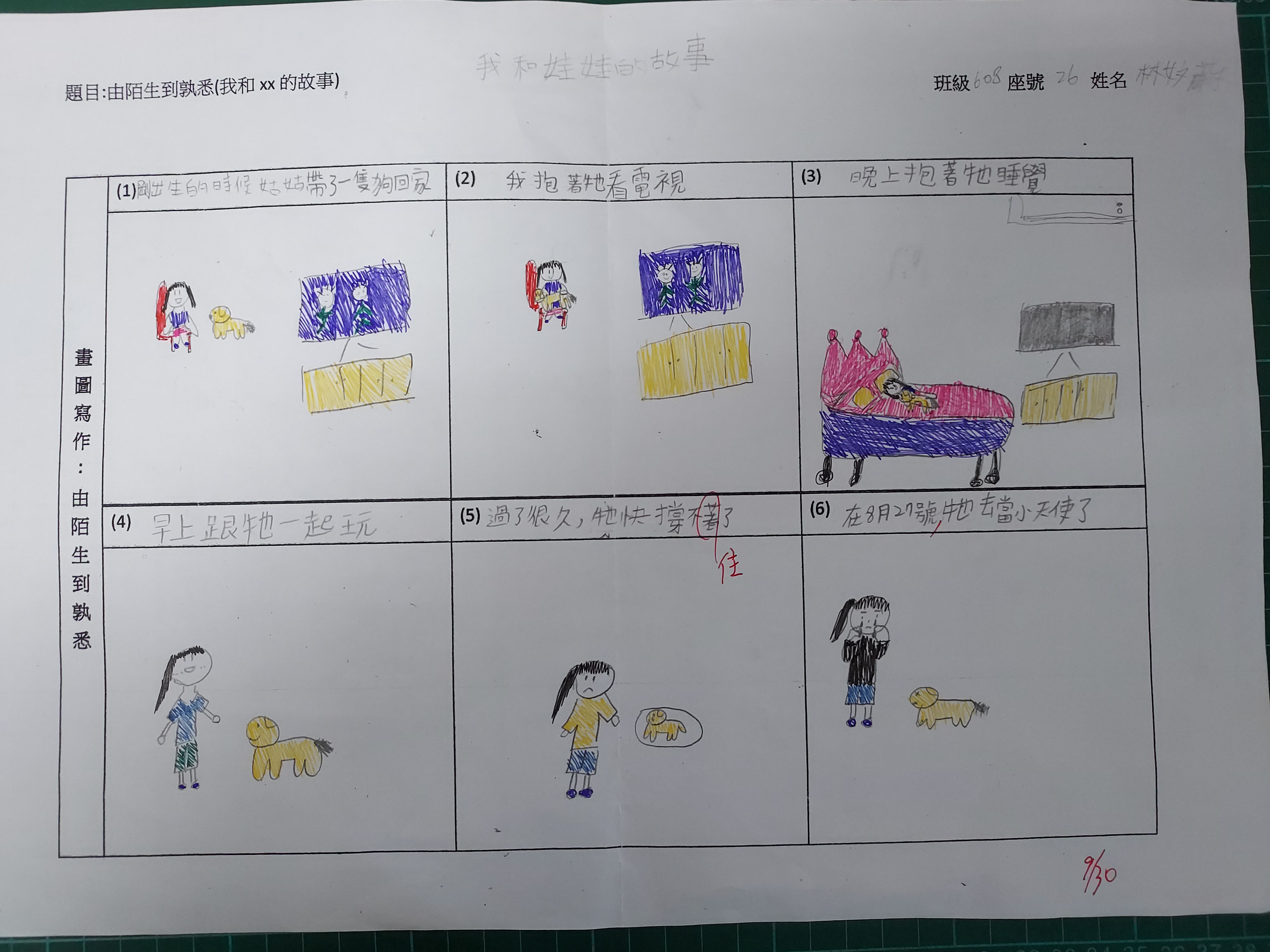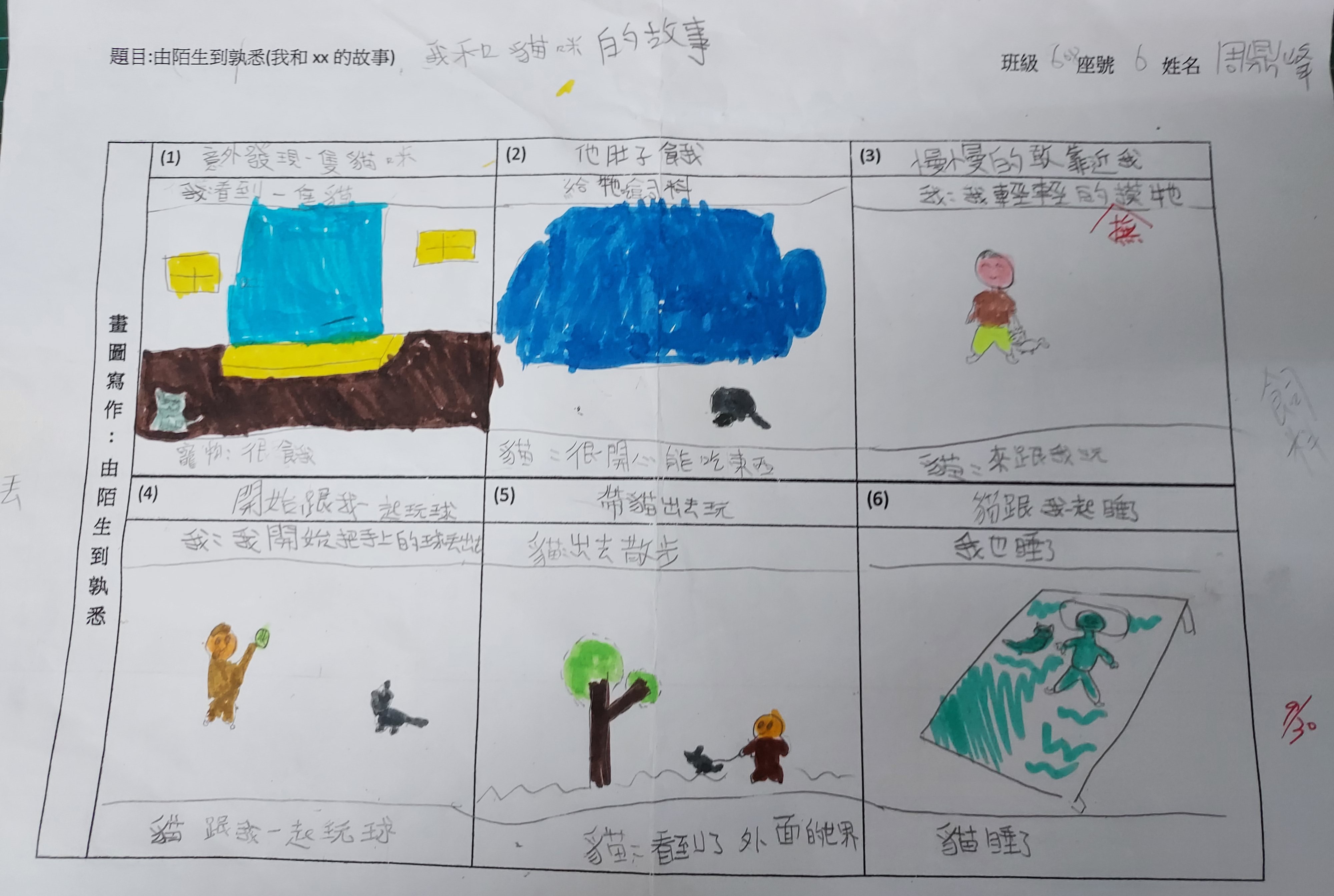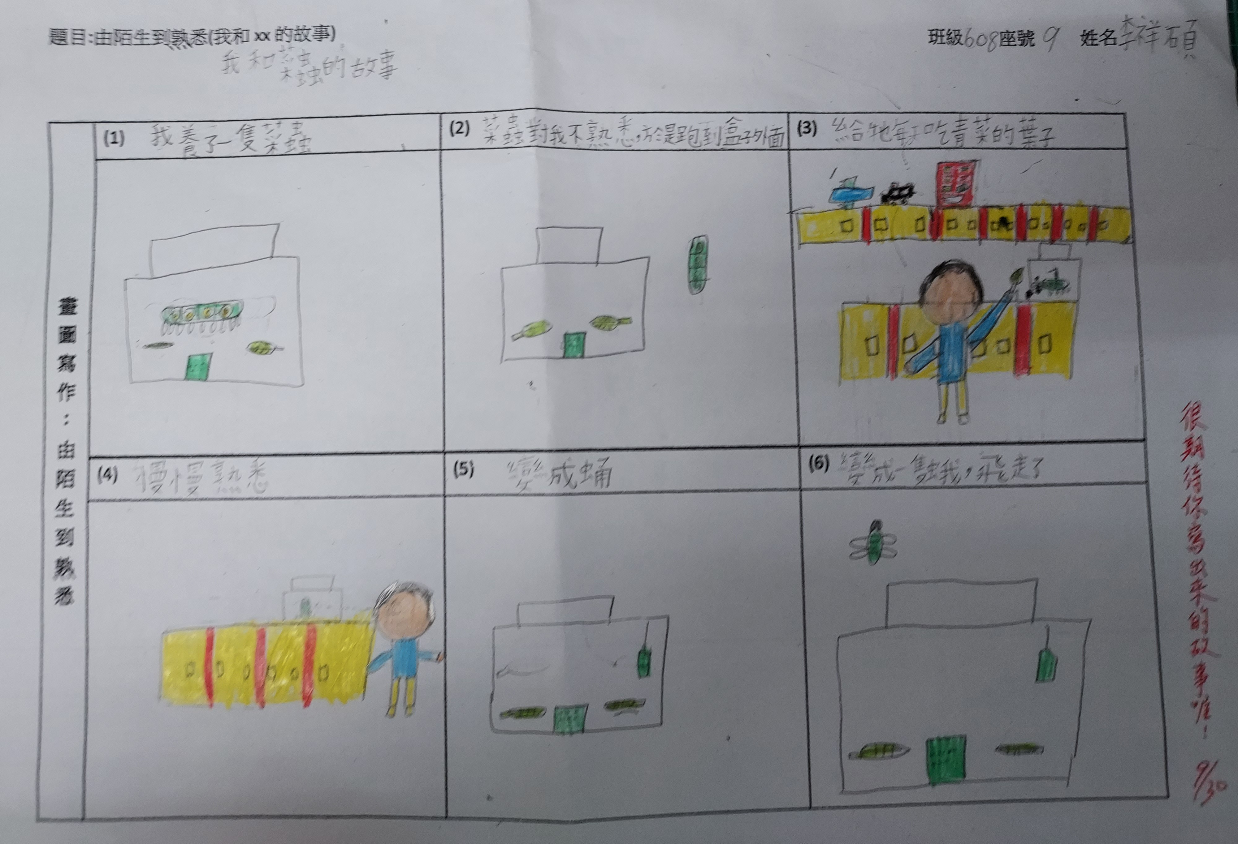 選完題材後,叫小朋友畫出六個場景,就是六個分鏡頭,並寫下小標題。(參考賴建光老師部落格)
