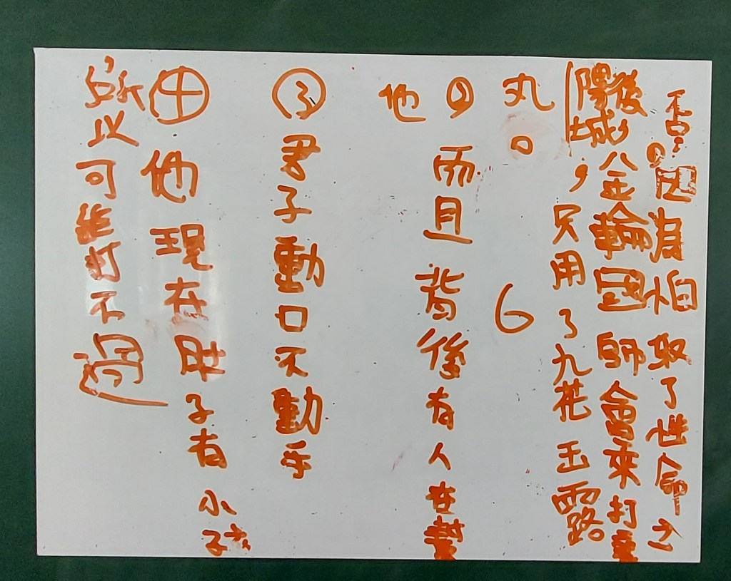 第三題至第六題,希望孩子們能精讀課文,所以小組討論花了蠻多時間,討論的答案如下: