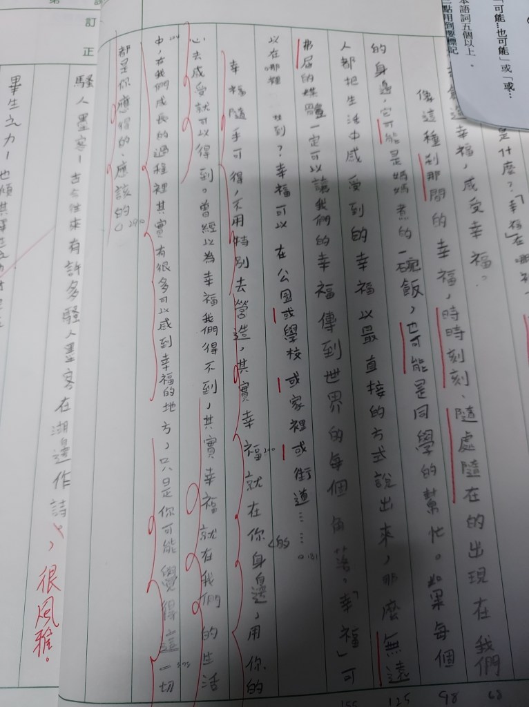 幸福無所不在,小小的幸福也算,或許是冬天的一股暖流,或許是品嚐熱騰騰的玉米濃湯,或許是看見孩子天真的笑容。以下為學生的作品: