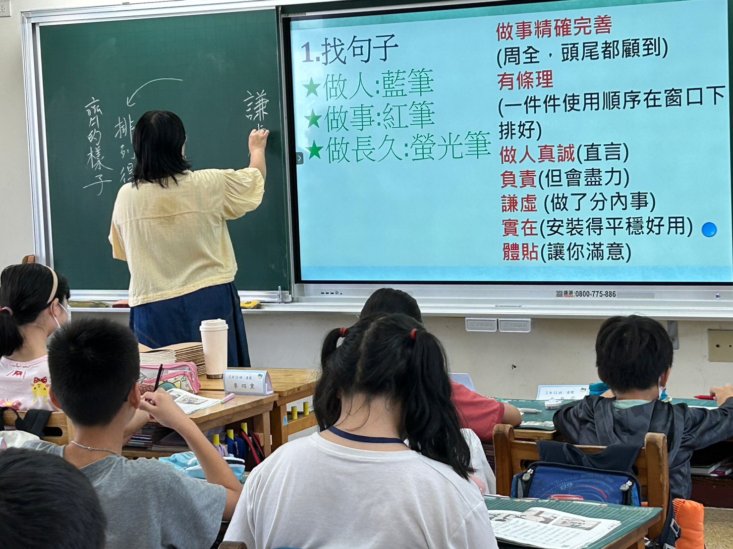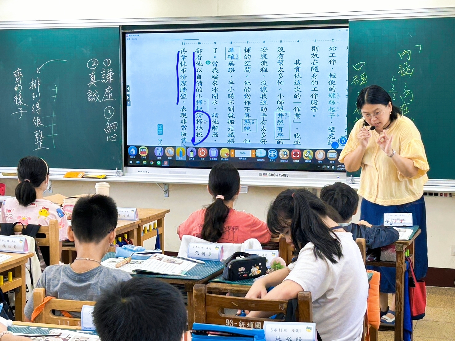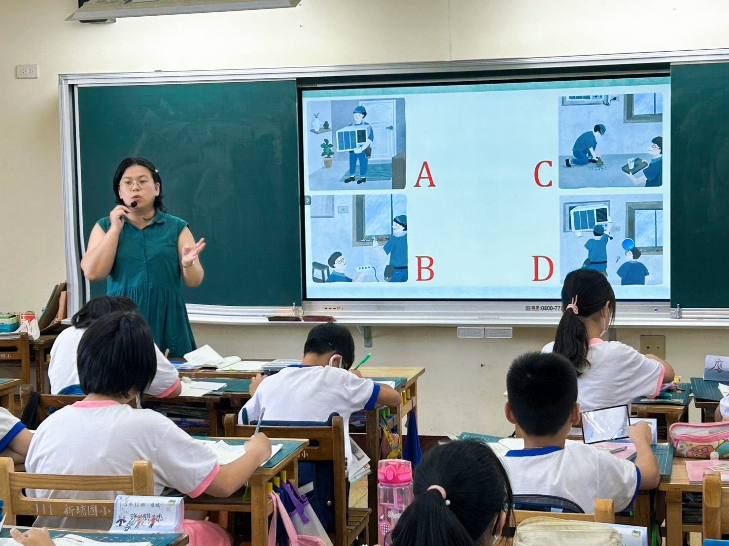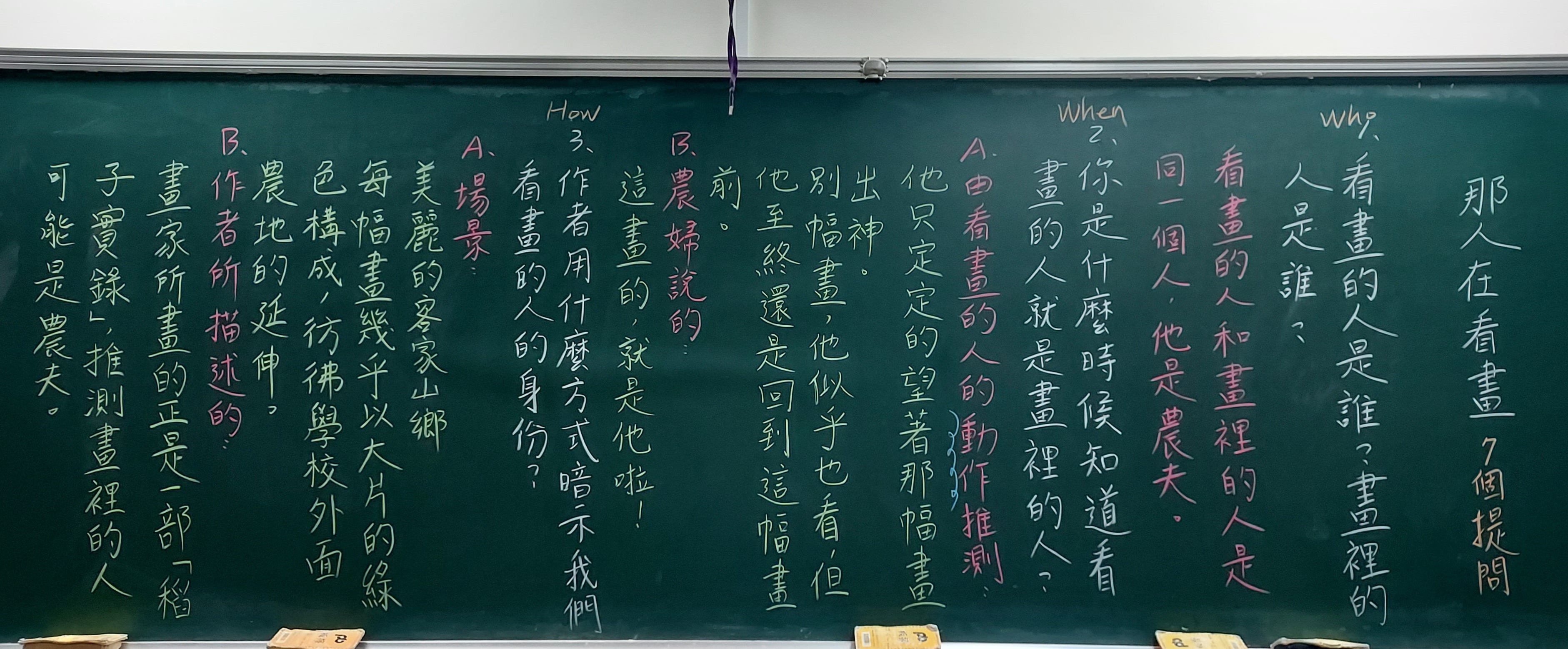 我蠻想帶學生實際去校園巡禮,畢竟要產出寫景的短文,走一趟是比較好,但聽同事說有帶孩子們去校園走走,回來書寫的狀況不好,寫景很難,寫不出什麼東西。我想一方面是這麼多人一起出去逛,老師若不像導覽員直接點出要觀察的重點,那麼孩子們也只是走馬看花,看了很多東西也留不下什麼印象。若是老師只帶一、二組出去校園巡禮,效果應該會很好。另一方面,看景物、看東西要有感,如果現在叫孩子們看零食種類、遊戲種類,眼睛馬上睜得很大。所以,我想倒不如就在教室裡看平板觀察景物,安靜看,反覆看,各組有問題老師巡視起來也很方便。