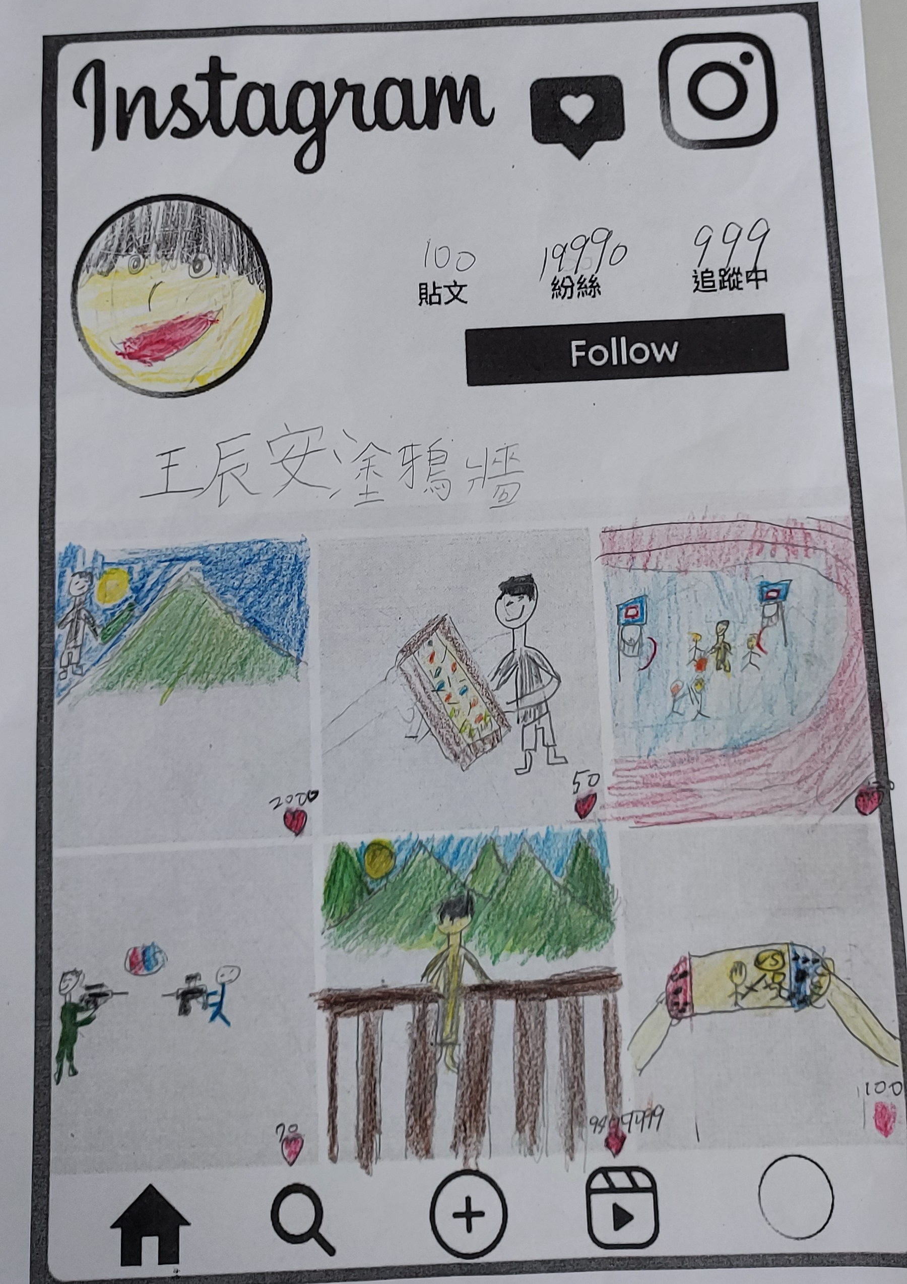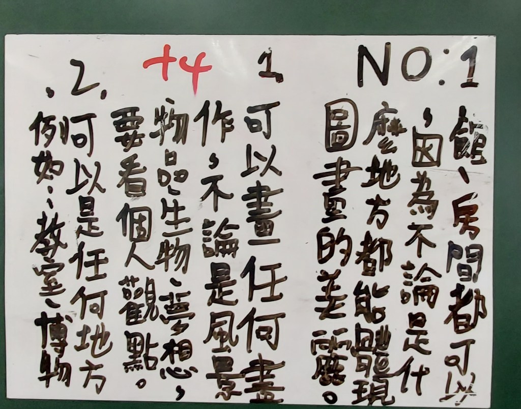 在舊課綱裡有一課叫〈尋找藝術精靈〉,我很喜歡,新課綱刪掉了很可惜。其實,學校的裝置藝術或藝術造景是一項絕佳可以描寫的素材,因此我便以「尋找藝術精靈」為主題,用了二節課時間帶孩子們進行「定點觀察法」的寫作。