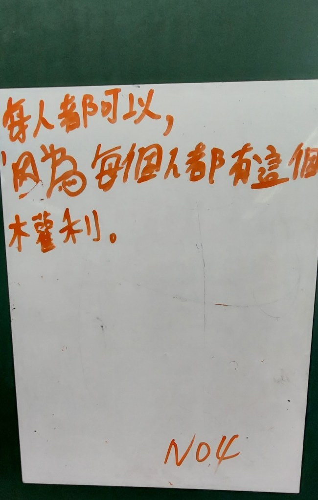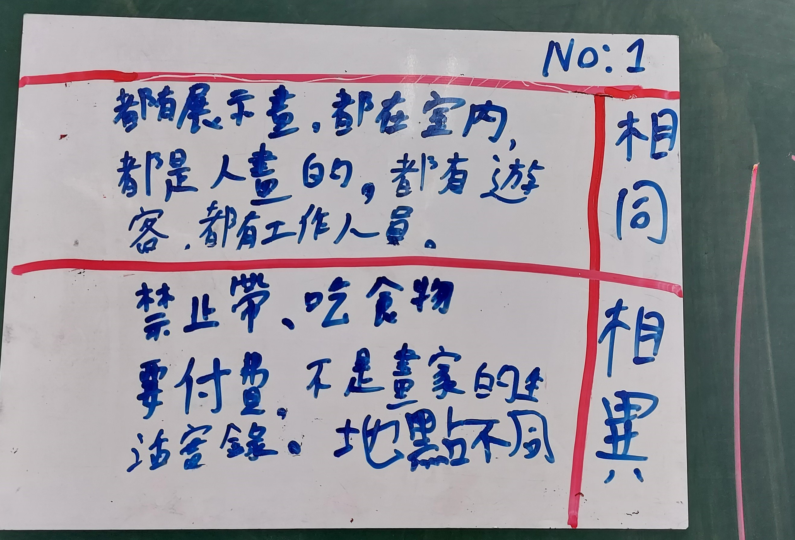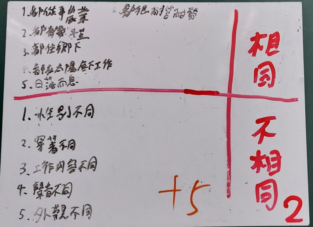 分組合作學習,不會每一組都很快產出東西,有一組寫得很慢,但出來的短句還不錯,很通順;有一組的話需要老師不斷指點,不斷拋出問題才能寫出一些東西。看照片寫作,大量用到視覺摹寫,包含顏色、形狀、外型、線條等,只要有抓到重點大致上可以寫出來。藝術造景部分,希望書屋(圖書館)和希望之丘(跑道)很適合用譬喻法進行描寫,例如: