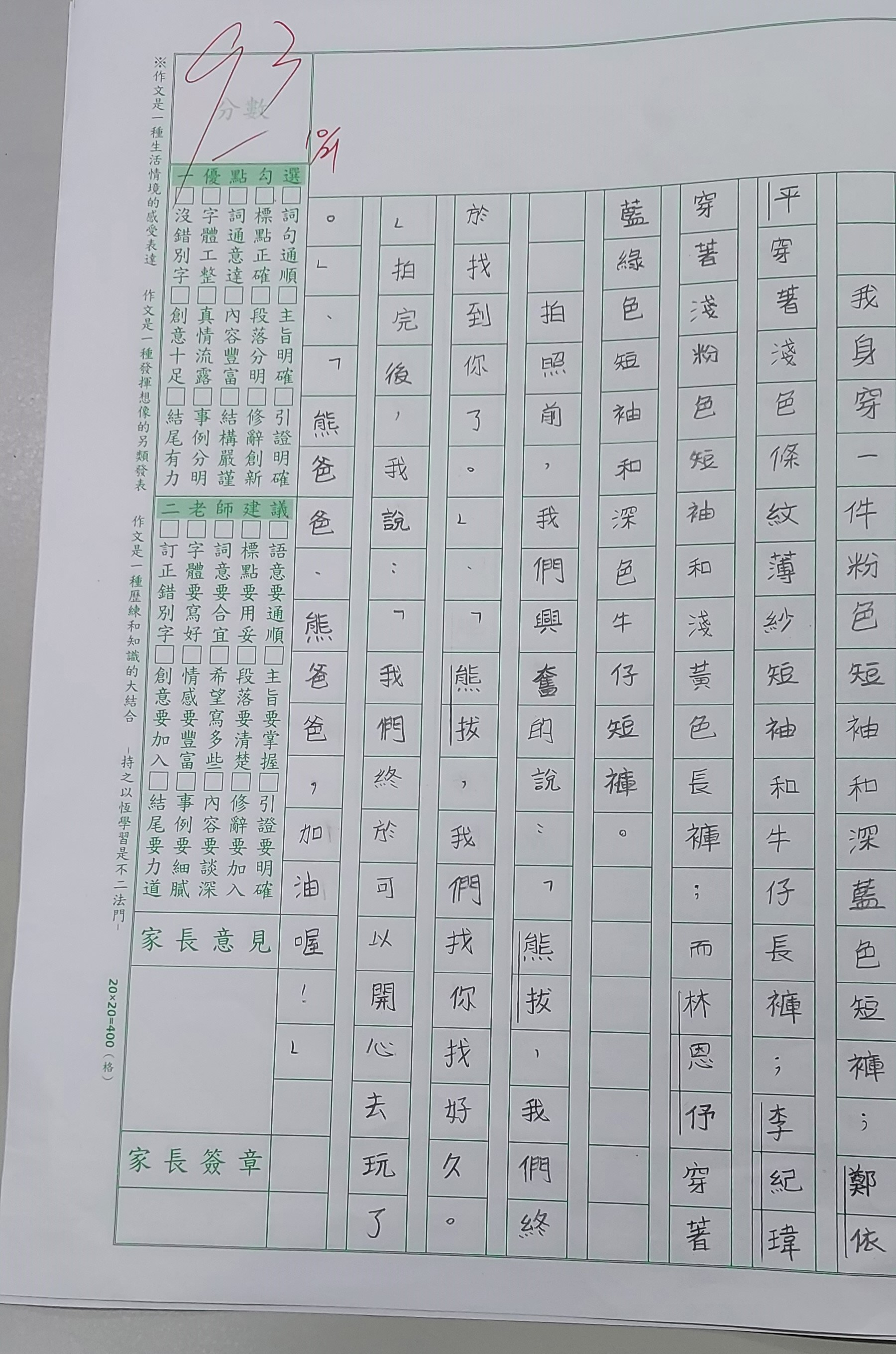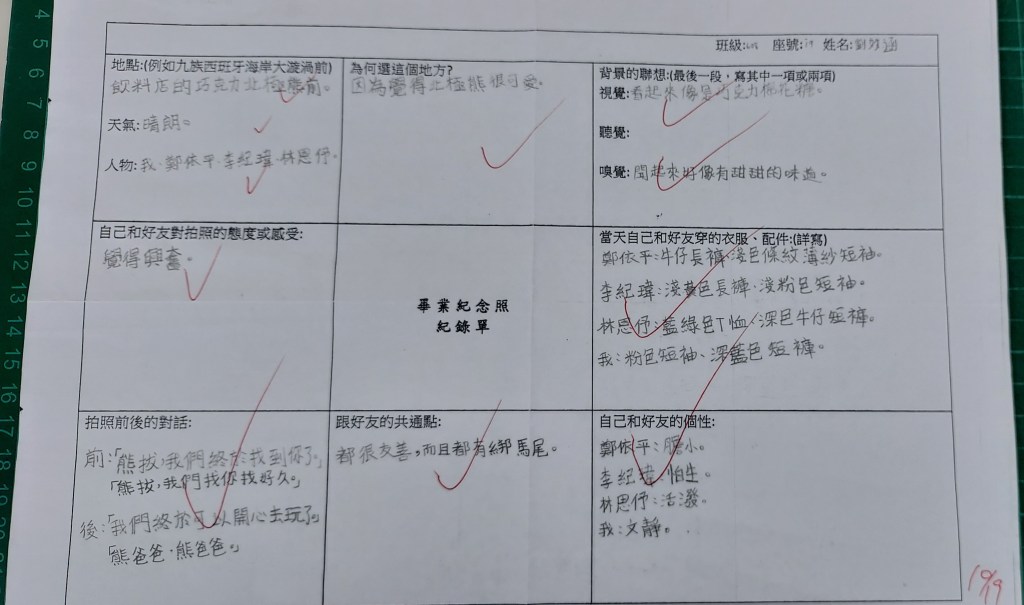 本班學生作品出成週末回家作業,待下週批改完再放上部落格供老師參考喔!